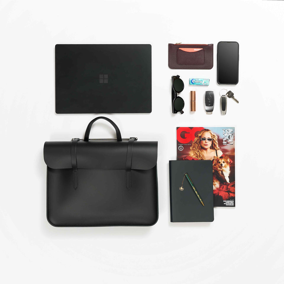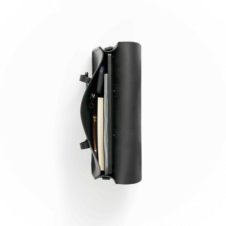 ミュージックケースは、スタイリッシュなデザインが重なり合い生まれました。開閉にバーを使用し、仕事用のバッグとしてオリジナリティの高い作りです。バーでフロントカバーを固定し、大切な持ち物を安全に収納できます。どんなものを入れてもすっきりとなめらかに見せることができる、用途の広い仕事用のバッグです。