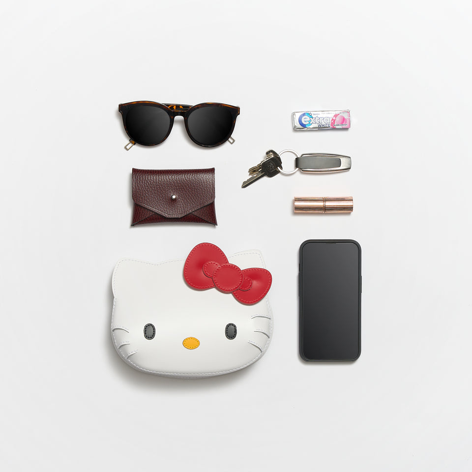 ハローキティの50周年とケンブリッジサッチェルの15周年を記念して作られた、ハローキティを心から愛する人のためのデザインのミニバッグ。 ハローキティのアイコニックなフェイス、手縫いのひげからシグネチャーの赤いリボン*まで手作業で丁寧に再現しました。取り外し・調節可能なショルダーストラップが付いています。